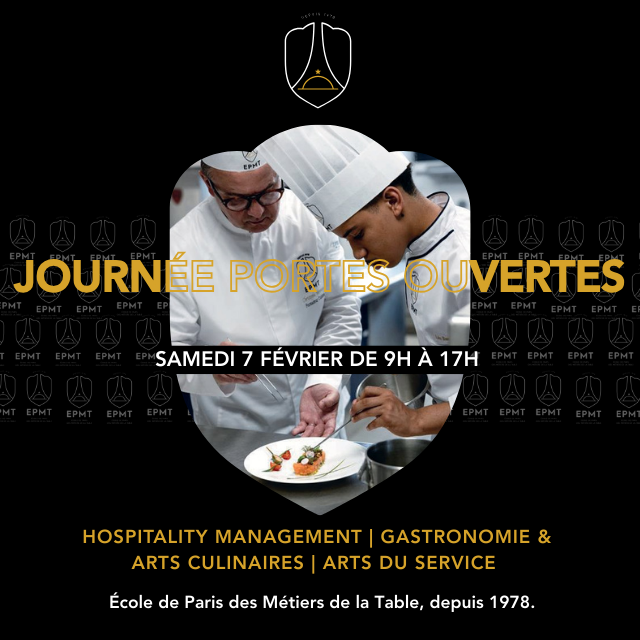 Métiers 04 février 2026 - 10:26 Au menu : infos métiers, démonstrations et dégustations, visite du campus et de son restaurant d'application titré Maître Restaurateur, échanges avec les équipes pédagogiques et les apprentis. PDF (68 Ko) Télécharger credit EPMT
