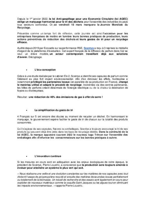 Depuis le 1er janvier 2022, la loi Anti-gaspillage pour une Economie Circulaire (loi AGEC) oblige un marquage harmonisé pour le tri des déchets pour l’ensemble des industries du pays tous secteurs confondus. Or, ce vendredi 18 mars marquera la Journée Mondiale du Recyclage.