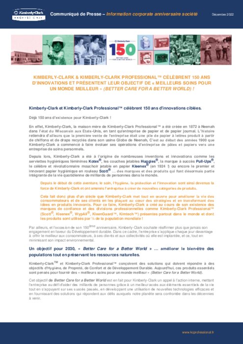Fournisseurs 10 janvier 2023 - 13:25 En effet, Kimberly-Clark, la maison mère de Kimberly-Clark Professional a été créée en 1872 à Neenah dans l’état du Wisconsin aux Etats-Unis, en tant qu'entreprise de papier et de papier journal. PDF (222 Ko) Télécharger