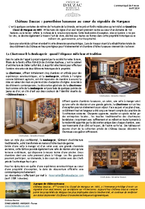 C’est à quelques centaines de mètres de l’estuaire de la Gironde, entre prés et forêts médocaines qu’est niché ce Grand Cru Classé de Margaux en 1855. 49 hectares de vignes d’un seul tenant prennent racine au cœur d’un domaine de 120 hectares, où le terroir reflète la richesse de la nature environnante. Cette biodiversité d’exception, mise en lumière à travers les vins, se dessine également à travers l’art de vivre, décliné sous toutes ses formes dans cette propriété historique où se mêlent vin, gastronomie, art et hospitalité.