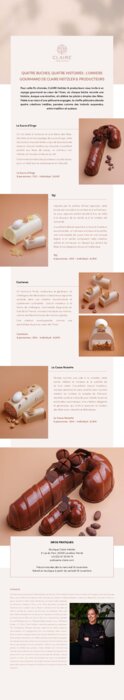 Pour cette fin d’année, Claire Heitzler & Producteurs invite à un voyage gourmand au coeur de l’hiver, où chaque bûche raconte une histoire, évoque une émotion, et célèbre les plaisirs simples des fêtes. Fidèle à sa vision d’une pâtisserie engagée, la cheffe pâtissière dévoile quatre créations inédites, pensées comme des instants suspendus, entre tradition et audace.