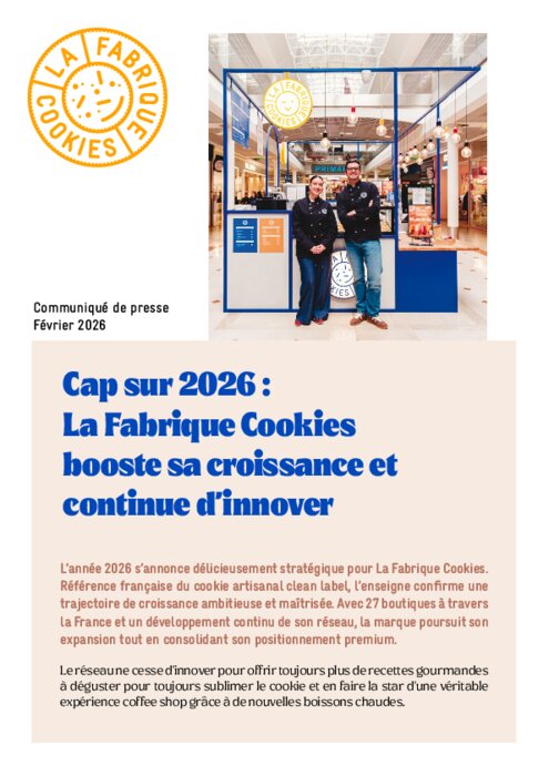 L’année 2026 s’annonce délicieusement stratégique pour La Fabrique Cookies. Référence française du cookie artisanal clean label, l’enseigne confirme une trajectoire de croissance ambitieuse et maîtrisée. Avec 27 boutiques à travers la France et un développement continu de son réseau, la marque poursuit son expansion tout en consolidant son positionnement premium.