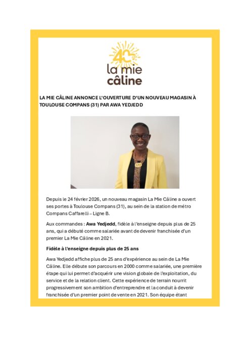 La Mie Câline annonce l'ouverture d'un magasin à Toulouse Compans