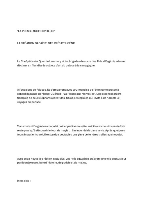 "La Presse aux merveilles", la création de Pâques des Prés d'Eugénie