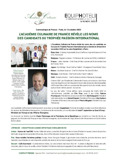 Métiers 13 octobre 2022 - 09:33 La plus ancienne association de chefs vient également de révéler les noms des 6 candidats en lice pour la compétition. PDF (412 Ko) Télécharger