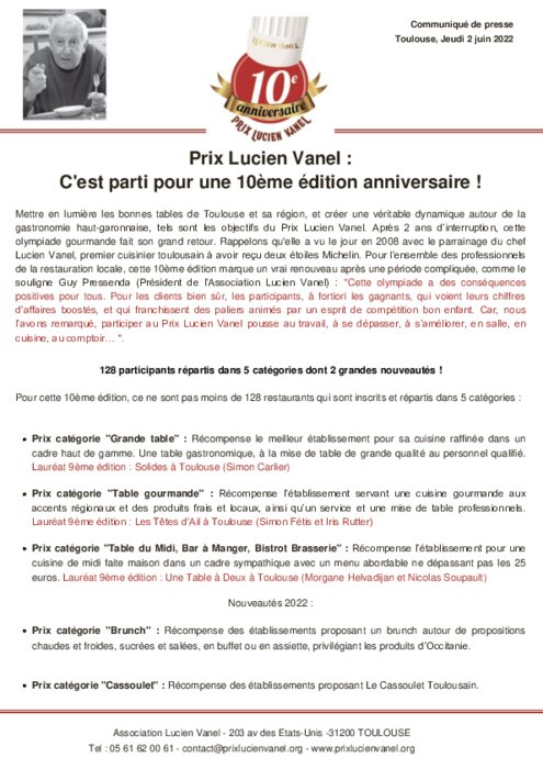 Mettre en lumière les bonnes tables de Toulouse et sa région, et créer une véritable dynamique autour de la gastronomie haut-garonnaise, tels sont les objectifs du Prix Lucien Vanel.