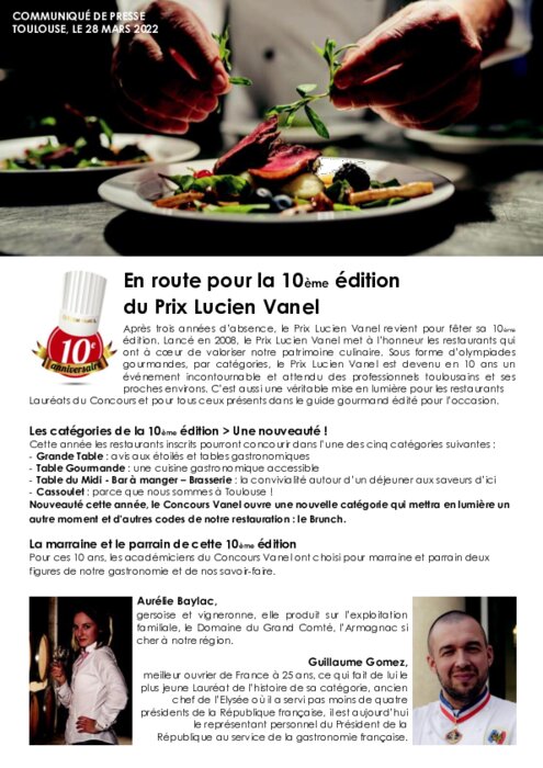 Sous forme d'olympiades gourmandes, par catégories, le Prix Lucien Vanel met à l'honneur les restaurants qui ont à cœur de valoriser notre patrimoine culinaire.