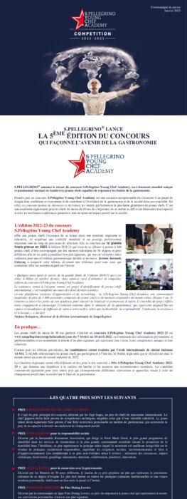 Métiers 28 janvier 2022 - 13:30 Un évènement mondial unique et passionnant mettant en lumière les jeunes chefs capables de repousser les limites de la gastronomie. PDF (363 Ko) Télécharger