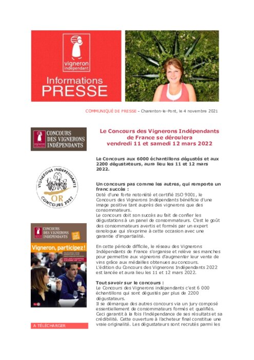 Métiers 04 novembre 2021 - 16:58 Le Concours aux 6000 échantillons dégustés et aux 2200 dégustateurs, aura lieu les 11 et 12 mars 2022. PDF (161 Ko) Télécharger
