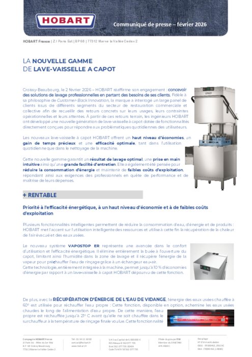 Hobart réaffirme son engagement : concevoir des solutions de lavage professionnelles en partant des besoins de ses clients. Fidèle à sa philosophie de Customer Back Innovation, la marque a interrogé un large panel de clients issus de différents segments du secteur de restauration commerciale et collective afin de recueillir des retours concrets sur leurs usages, leurs contraintes opérationnelles et leurs attentes. À partir de ces retours terrain, les ingénieurs HOBART ont développé une nouvelle génération de lave-vaisselle à capot dotée de fonctionnalités directement conçues pour répondre aux problématiques quotidiennes des utilisateurs.