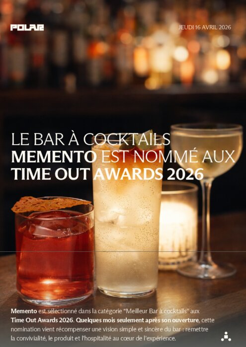 En lieu et place de l’ancien Sherry Butt, Memento ouvre un nouveau chapitre dans l’histoire de cette adresse emblématique du Marais. Chez Memento, la carte privilégie la lisibilité et le plaisir. La sélection d’une douzaine de cocktails, entre signatures en pression et créations inspirées de trajectoires migratoires, raconte le métissage et le voyage par des techniques contemporaines et l’usage d’ingrédients
