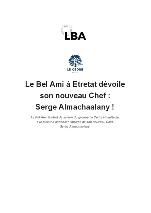 Le Bel Ami à Etretat dévoile son nouveau chef : Serge Almachaalany