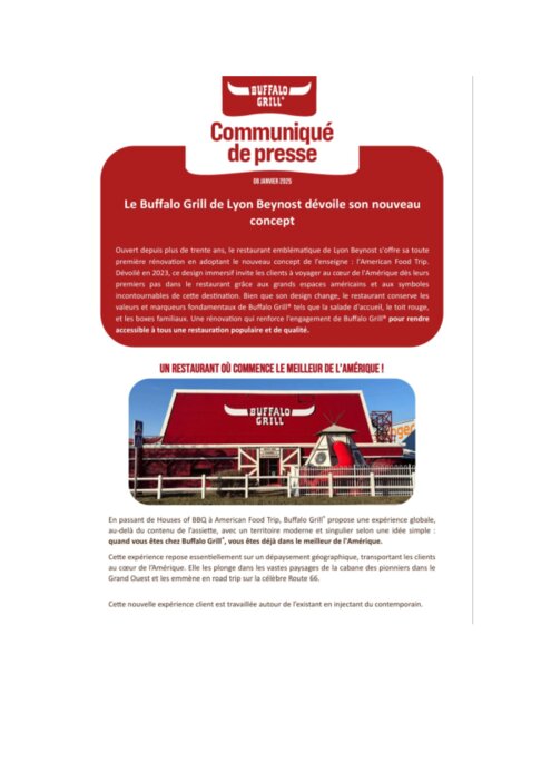 Le Buffalo Grill de Lyon Beynost dévoile son nouveau concept, marquant une étape clé dans l’évolution de l’enseigne. Espaces modernisés, ambiance repensée et parcours client optimisé traduisent la volonté du groupe de renforcer l’expérience en restaurant. Ce nouveau cadre conjugue convivialité, confort et identité de marque. Une transformation pensée pour répondre aux attentes actuelles des consommateurs.