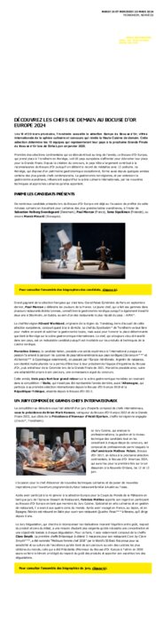 Les 19 et 20 mars , Trondheim accueille la sélection Europe du Bocuse d’Or, vitrine internationale de la sphère culinaire et concours qui révèle la Haute Cuisine de demain. Cette sélection détermine les 10 équipes qui représenteront leur pays à la prochaine Grande Finale du Bocuse d’Or lors de Sirha Lyon en janvier 2025.