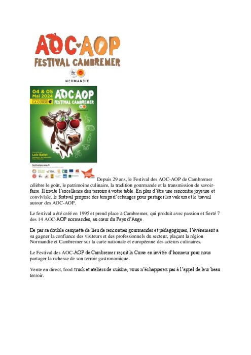 Le festival a été créé en 1995 et prend place à Cambremer, qui produit avec passion et fierté 7 des 14 AOC-AOP normandes, au cœur du Pays d’Auge. De par sa double casquette de lieu de rencontres gourmandes et pédagogiques, l’événement a su gagner la confiance des visiteurs et des professionnels du secteur, plaçant la région Normandie et Cambremer sur la carte nationale et européenne des acteurs culinaires.