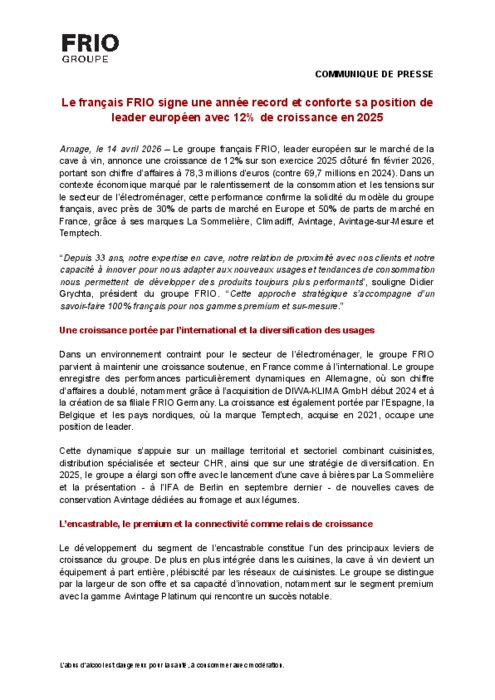 Le français FRIO signe une année record