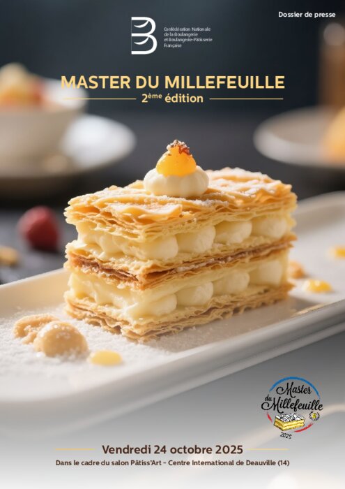 La 2ème édition du Master du Millefeuille se tiendra le vendredi 24 octobre, de 16h à 18h, au Centre International de Deauville (CID), dans le cadre du salon Pâtiss’Art. Organisé par la Confédération Nationale de la Boulangerie-Pâtisserie Française, cet événement met en lumière l’excellence et la créativité des boulangers-pâtissiers venus de toute la France.