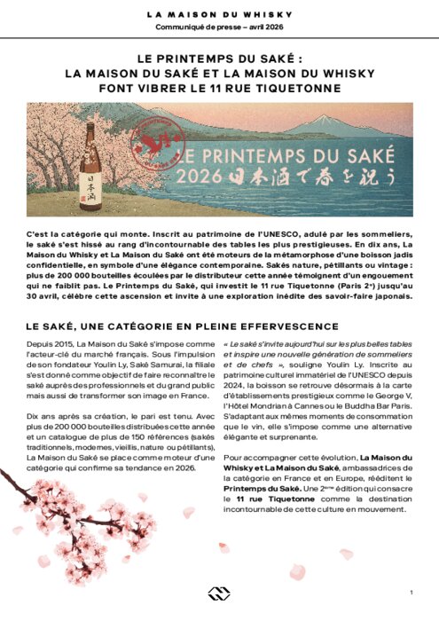 LE PRINTEMPS DU SAKÉ PAR LA MAISON DU SAKÉ & LA MAISON DU WHISKY
