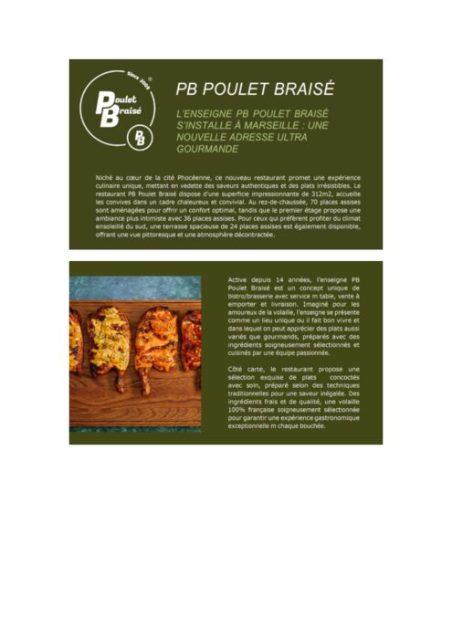 Le restaurant PB Poulet Braisé s'installe à Marseille