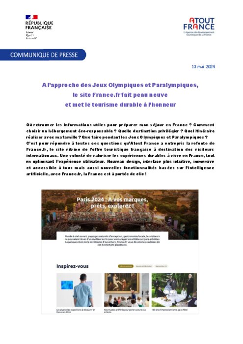 C’est pour répondre à toutes ces questions qu’Atout France a entrepris la refonte de France.fr, le site vitrine de l’offre touristique française à destination des visiteurs internationaux. Une volonté de valoriser les expériences durables à vivre en France, tout en optimisant l’expérience utilisateur. Nouveau design, interface plus intuitive, immersive et accessible à tous mais aussi nouvelles fonctionnalités basées sur l’intelligence artificielle, avec France.fr, la France est à portée de clic !
