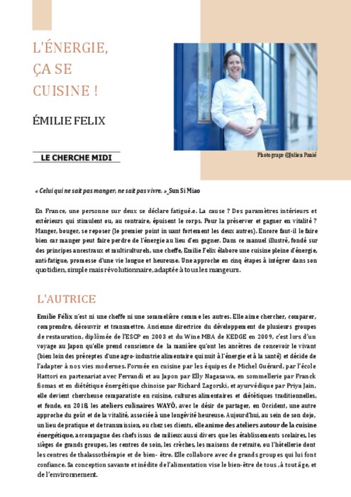 Emilie Félix n’est ni une cheffe ni une sommelière comme les autres. Elle aime chercher, comparer, comprendre, découvrir et transmettre. Ancienne directrice du développement de plusieurs groupes de restauration, diplômée de l’ESCP en 2003 et du Wine MBA de KEDGE en 2009, c’est lors d’un voyage au Japon qu’elle prend conscience de la manière qu’ont les ancêtres de concevoir le vivant (bien loin des préceptes d’une agro-industrie alimentaire qui nuit à l’énergie et à la santé) et décide de l’adapter à nos vies modernes.