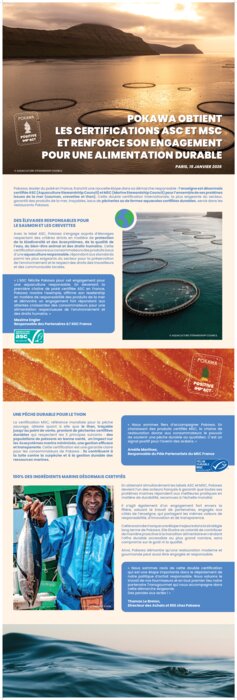 Cette double certification internationale, parmi les plus exigeantes du secteur, garantit une aquaculture responsable, une pêche durable, la traçabilité complète des produits et le respect de critères stricts en matière de biodiversité, d’écosystèmes marins et de droits humains.