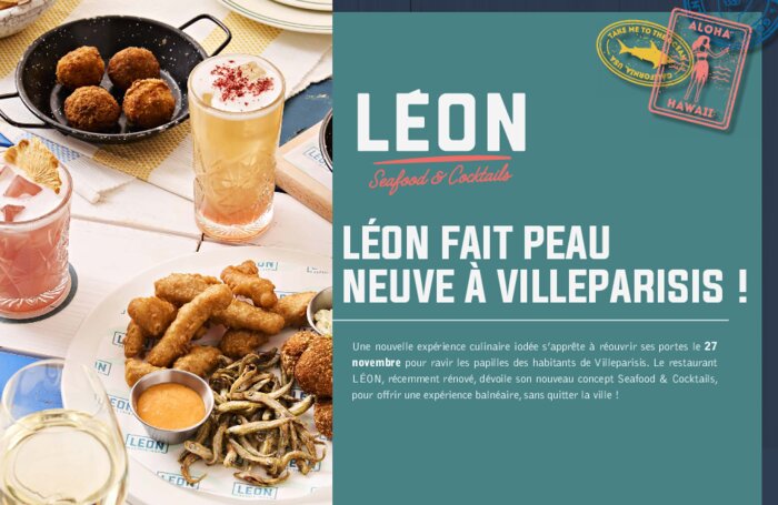 Une nouvelle expérience culinaire iodée s’apprête à rouvrir ses portes le 27 novembre pour ravir les papilles des habitants de Villeparisis. Le restaurant Léon, récemment rénové, dévoile son nouveau concept Seafood & Cocktails, pour offrir une expérience balnéaire, sans quitter la ville.