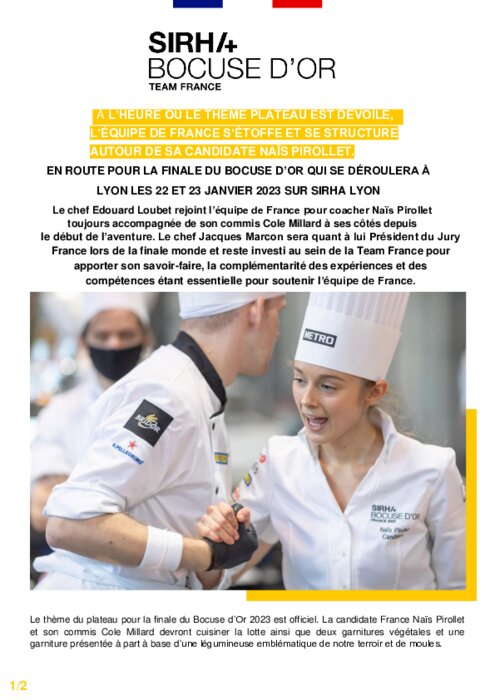 Métiers 12 octobre 2022 - 11:05 Le chef Edouard Loubet rejoint l’équipe de France pour coacher Naïs Pirollet toujours accompagnée de son commis Cole Millard à ses côtés depuis le début de l’aventure. PDF (394 Ko) Télécharger