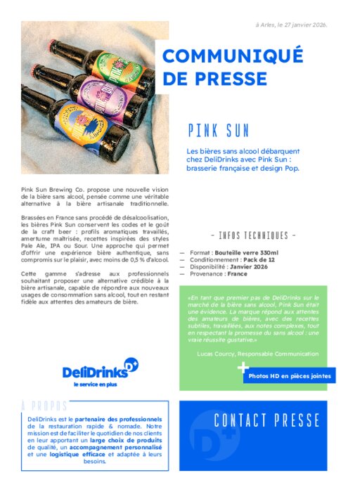 Pink Sun Brewing Co. propose une nouvelle vision de la bière sans alcool, pensée comme une véritable alternative à la bière artisanale traditionnelle. Brassées en France sans procédé de désalcoolisation, les bières Pink Sun conservent les codes et le goût de la craft beer : profils aromatiques travaillés, amertume maîtrisée, recettes inspirées des styles Pale Ale, IPA ou Sour. Une approche qui permet d’offrir une expérience bière authentique, sans compromis sur le plaisir, avec moins de 0,5 % d’alcool.