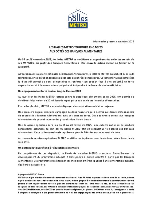 Les Halles Metro toujours engagées aux côtés des Banques Alimentaires