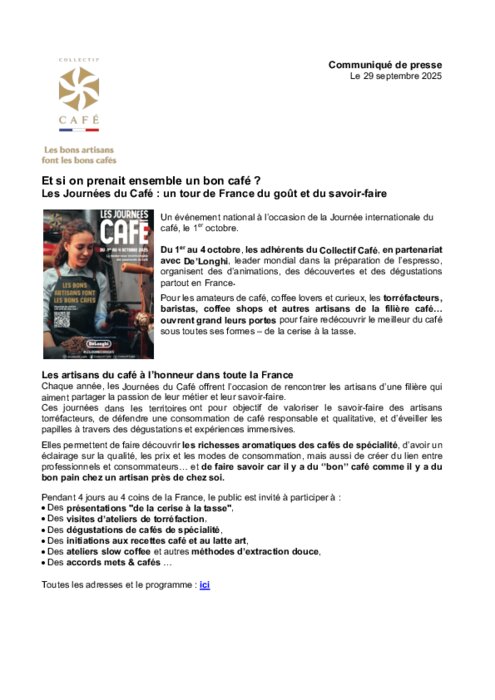 Chaque année, les Journées du Café offrent l’occasion de rencontrer les artisans d’une filière qui aiment partager la passion de leur métier et leur savoir-faire. Ces journées dans les territoires ont pour objectif de valoriser le savoir-faire des artisans torréfacteurs, de défendre une consommation de café responsable et qualitative, et d’éveiller les papilles à travers des dégustations et expériences immersives.