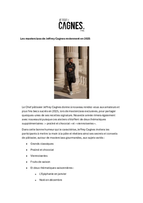 Les masterclass de Jeffrey Cagnes reviennent en 2025