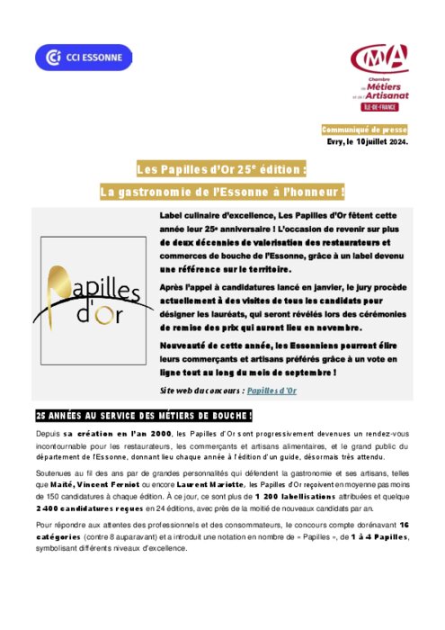 Depuis sa création en l’an 2000, les Papilles d’Or sont progressivement devenues un rendez-vous incontournable pour les restaurateurs, les commerçants et artisans alimentaires, et le grand public du département de l’Essonne, donnant lieu chaque année à l’édition d’un guide, désormais très attendu.