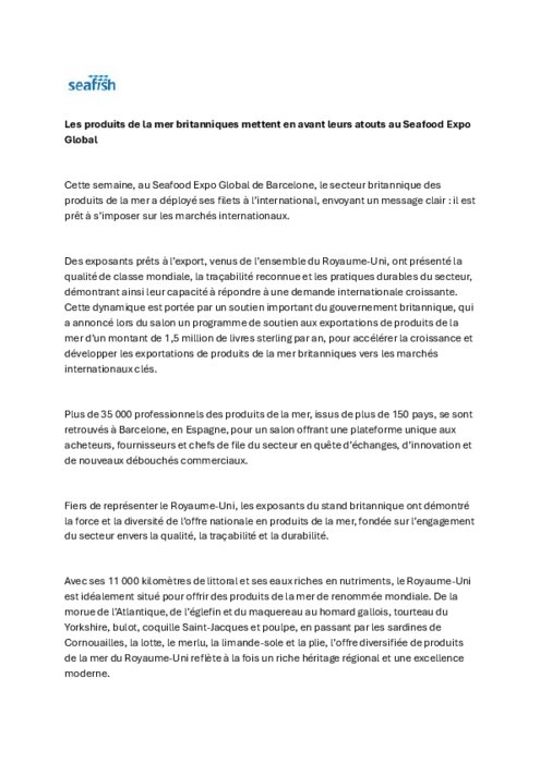 Les produits de la mer britanniques mettent en avant leurs atouts au Seafood Expo Global