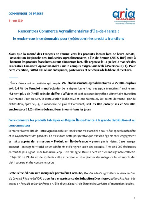 Les rencontres agroalimentaires d'Ile de France 2024 se tiendront le 11 juillet