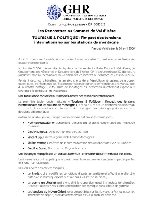 À plus de 2 000 mètres d’altitude, dans le cadre de La Folie Douce à Val d’Isère, le Groupement des Hôtelleries et Restaurations de France (GHR) a réuni près de 150 décideurs publics et privés à l’occasion de la 3ᵉ édition des Rencontres au Sommet les 7 et 8 avril .