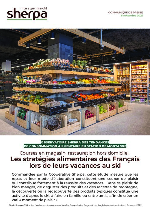 535€, c'est le budget dépensé en restauration pour une famille française pendant les vacances au ski. Commandée par la Coopérative Sherpa, cette étude CSA mesure le coût, le mode d'élaboration des repas et la dimension plaisir, facteur de réussite des vacances au ski. La découverte ou la redécouverte des produits typiques constitue un « moment de détente » bien loin des courses du quotidien.