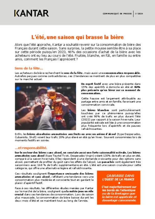 L’été, une saison qui brasse la bière (Etude Kantar)