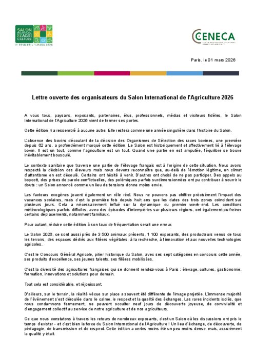 L’absence des bovins découlant de la décision des Organismes de Sélection des races bovines, une première depuis 62 ans, a profondément marqué cette édition. Le Salon est historiquement et affectivement lié à l’élevage bovin. Il est un tout, comme l’agriculture est un tout. Quand une partie en est amputée, l’équilibre se trouve inévitablement bousculé.