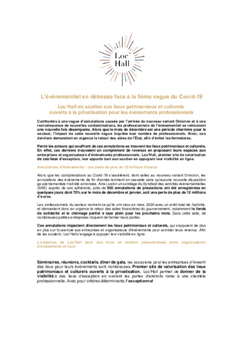 Métiers 03 décembre 2021 - 08:05 Confrontés à une vague d’annulations causée par l’arrivée du nouveau variant Omicron et à une recrudescence de nouvelles contaminations, les professionnels de l’événementiel se retrouvent une nouvelle fois désemparés. PDF (186 Ko) Télécharger