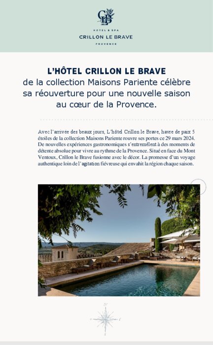 L'hôtel Crillon le Brave célèbre sa réouverture pour une nouvelle saison au cœur de la Provence