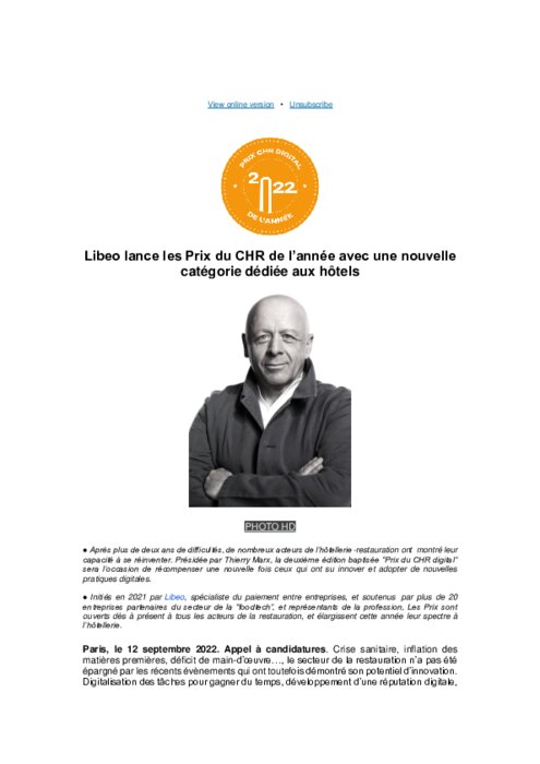 Initiés en 2021 par Libeo, spécialiste du paiement entre entreprises, et soutenus par plus de 20 entreprises partenaires du secteur de la “foodtech”, et représentants de la profession, Les Prix sont ouverts dès à présent à tous les acteurs de la restauration, et élargissent cette année leur spectre à l’hôtellerie.