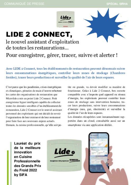 Avec LIDE 2 Connect, tous les établissements de restauration peuvent désormais suivre leurs consommations énergétiques, contrôler leurs zones de stockage (Chambres froides), tracer leurs productions et surveiller la qualité de l’air de leurs espaces.
