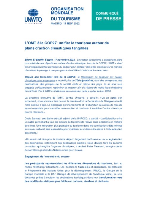 Métiers 17 novembre 2022 - 14:10 Le secteur du tourisme a exposé ses plans pour atteindre ses objectifs en matière d'action climatique. PDF (164 Ko) Télécharger