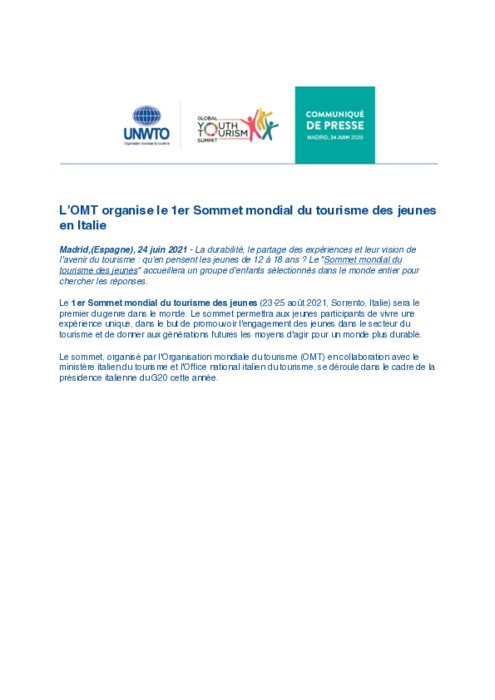 La durabilité, le partage des expériences et leur vision de l'avenir du tourisme : qu'en pensent les jeunes de 12 à 18 ans ? Le "Sommet mondial du tourisme des jeunes" accueillera un groupe d'enfants sélectionnés dans le monde entier pour chercher les réponses.