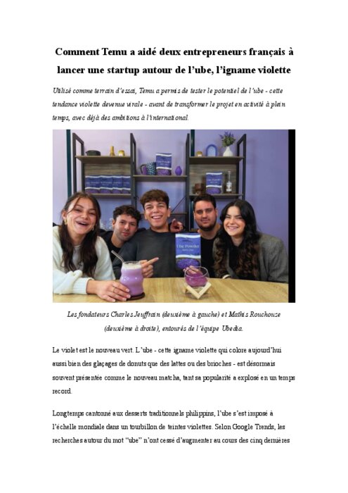L'ube arrive en France : le parcours d'une jeune marque food française