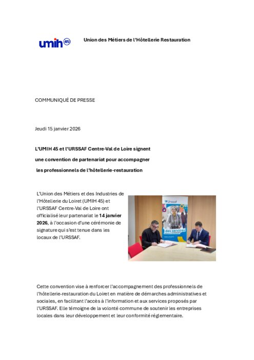 Cette convention vise à renforcer l’accompagnement des professionnels de l’hôtellerie-restauration du Loiret en matière de démarches administratives et sociales, en facilitant l’accès à l’information et aux services proposés par l’Urssaf. Elle témoigne de la volonté commune de soutenir les entreprises locales dans leur développement et leur conformité réglementaire.