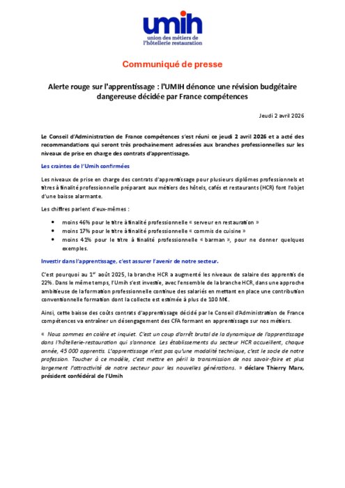 Métiers 02 avril 2026 - 16:33 Le Conseil d’Administration de France compétences s’est réuni ce jeudi 2 avril 2026 et a acté des recommandations qui seront très prochainement adressées aux branches professionnelles sur les niveaux de prise en charge des contrats d’apprentissage. PDF (365 Ko) Télécharger