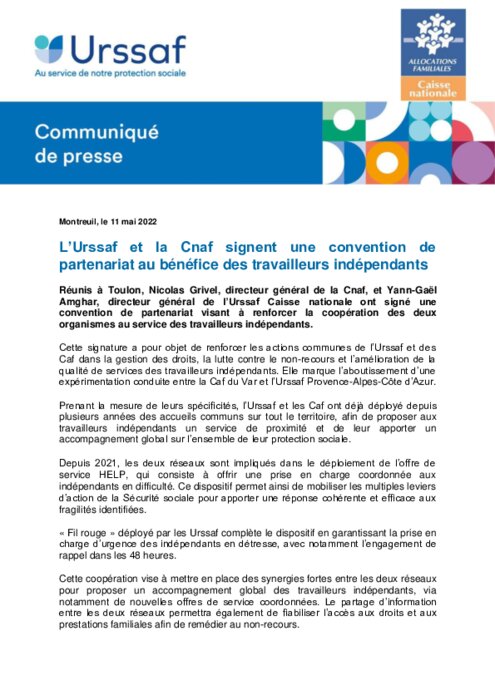 L'Urssaf et la Cnaf signent une convention de partenariat au bénéfice des travailleurs indépendants