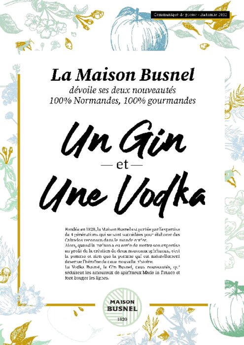 Fournisseurs 24 octobre 2022 - 15:23 Fondée en 1820, la Maison Busnel est portée par l'expertise de 4 générations qui se sont succédées pour élaborer des Calvados reconnus dans le monde entier. PDF (1 Mo) Télécharger